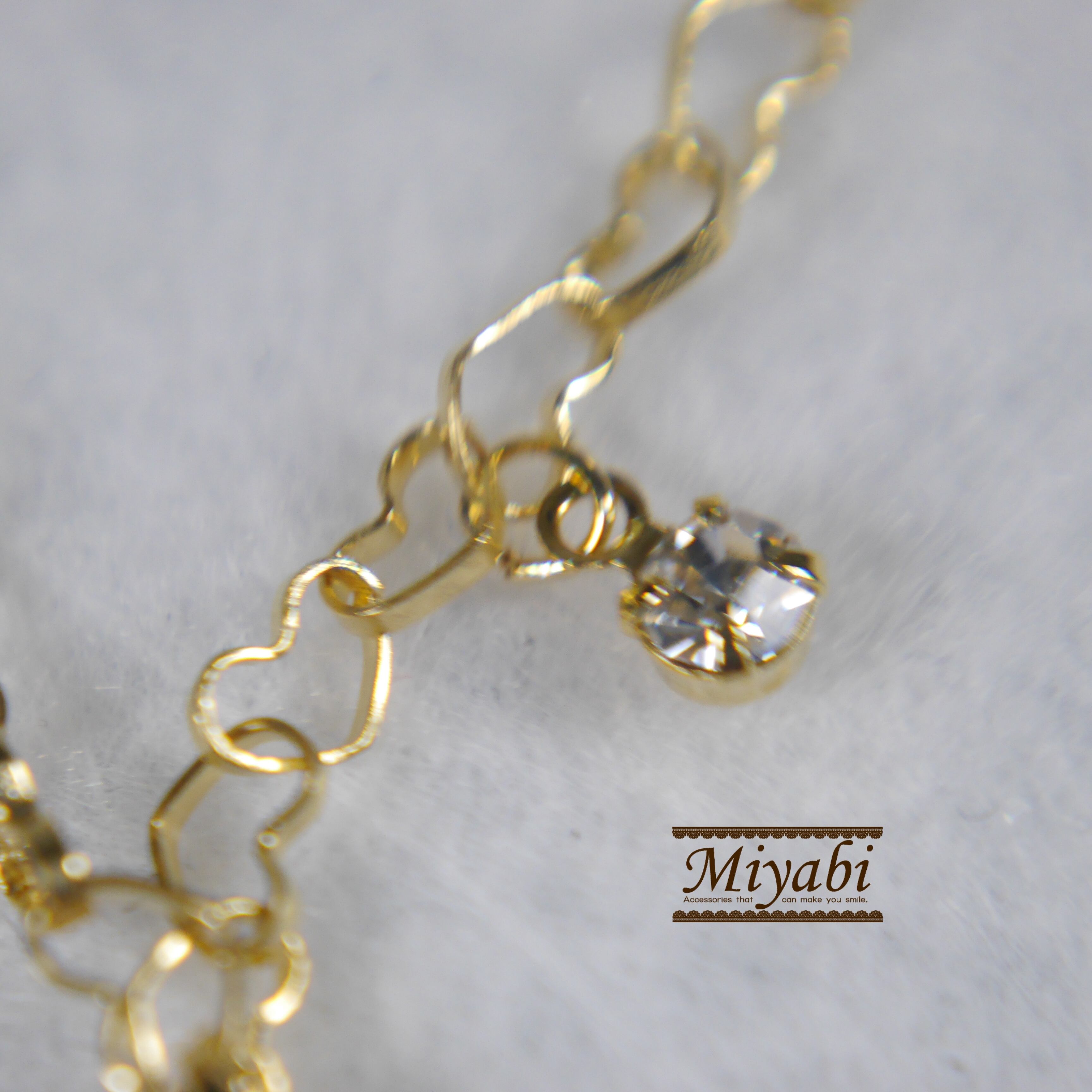 ハート型のチェーンが可愛いブレスレットです。